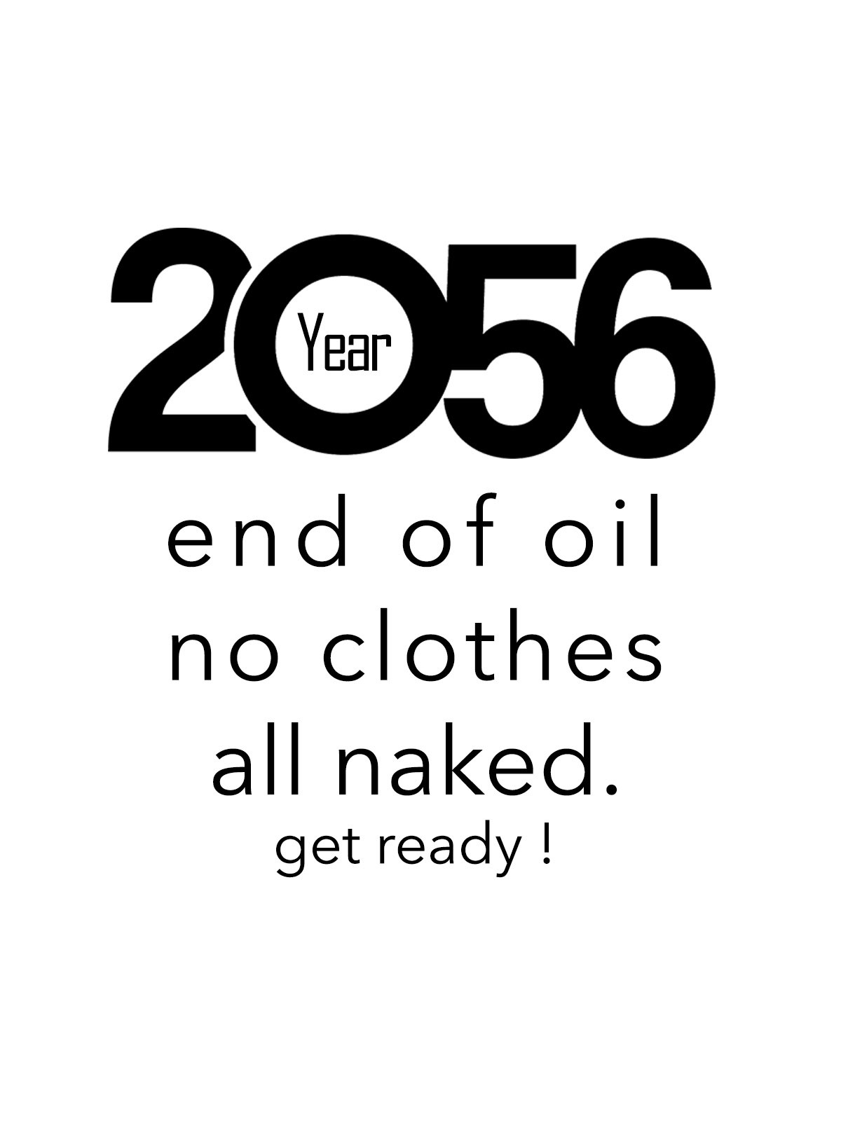 En 2056,plus de pétrole, plus de fabrication, plus d'habits !! Tous à poil ! Soyez prêt !